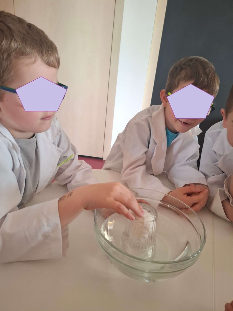 Doch was macht die Luft im Wasser? Zudem durften wir mit einer Schüssel Wasser, Küchenrollenpapier und einem Glas Experimente durchführen.