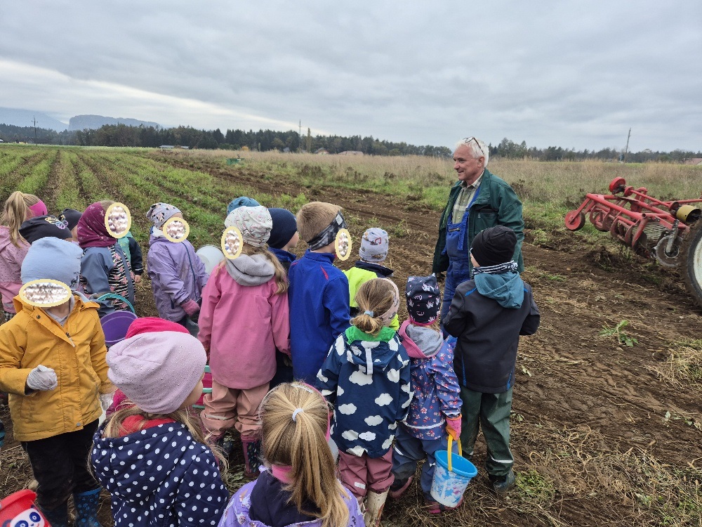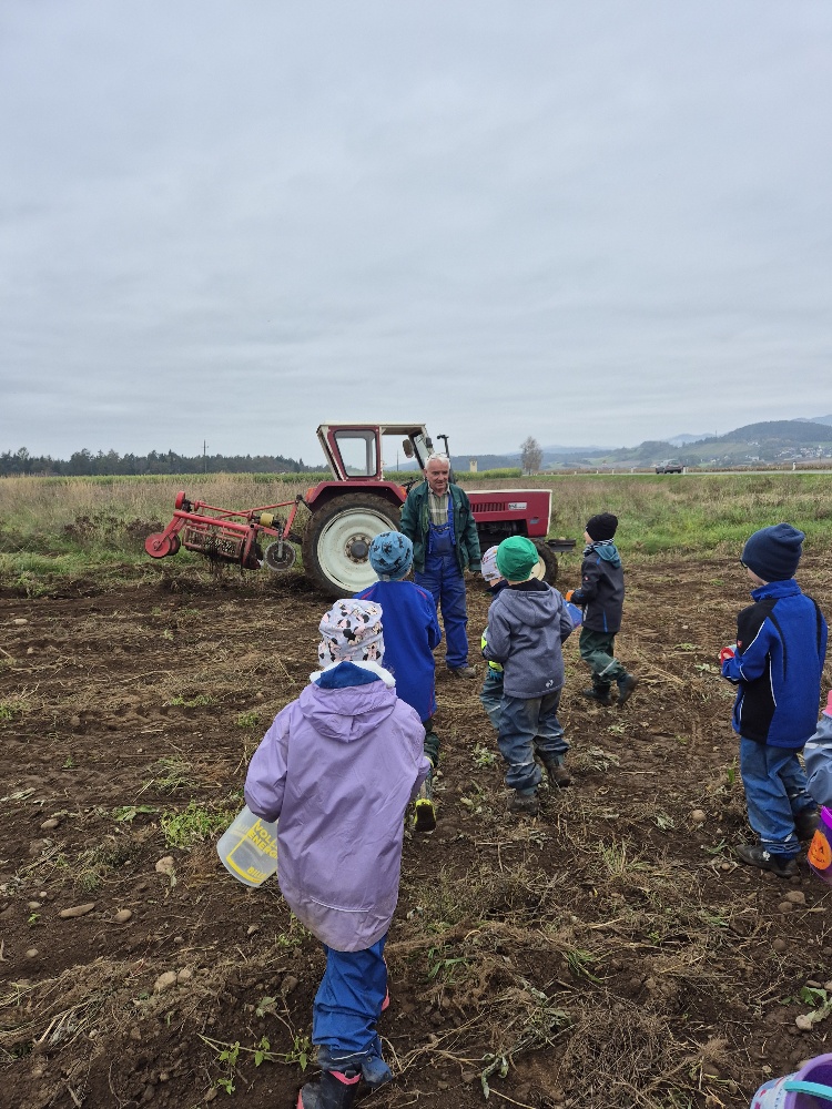 Unser Erntekorb füllt sich mit Äpfeln, Birnen, Nüssen, Kastanien, Mais und Kürbissen. Nur unsere heiß geliebten Kartoffeln haben uns noch gefehlt. Diese wollten wir aber natürlich selbst ernten. Unser benachbarter Bio-Kartoffelbauer Herr Viertlmayr ermöglicht uns dies jedes Jahr und so durften wir uns auch heuer mit voller Motivation auf die Suche begeben.