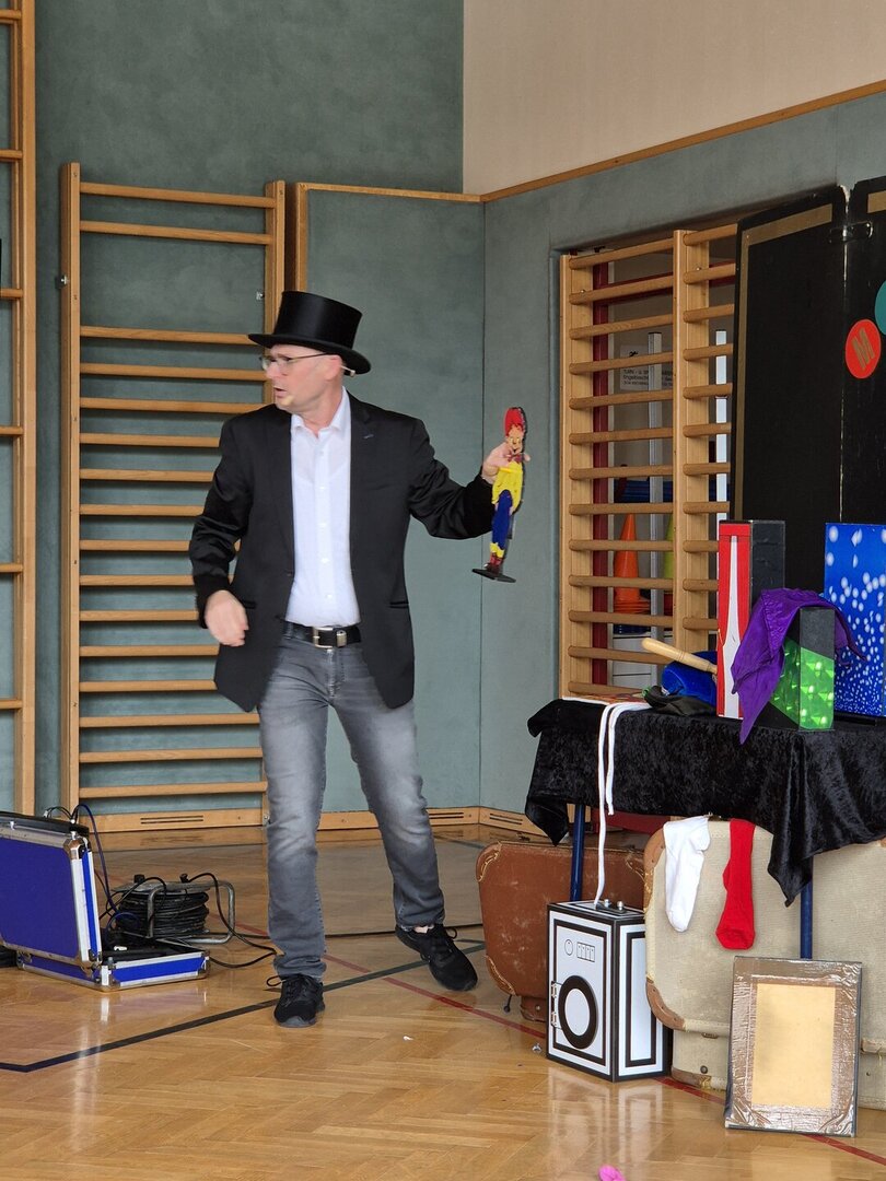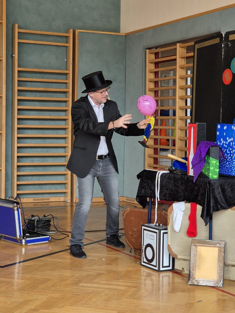 Gemeinsam mit den Kindern der Volksschule Tainach konnten wir uns von den Zauberkünsten des Zauberers überzeugen. Mit vielen Späßen unterhielt er uns und brachte den Turnsaal der Schule zum Beben. Wir versuchten so manchen Zaubertrick zu durchschauen, was uns aber nicht gelingen wollte. 123 Zauberei!