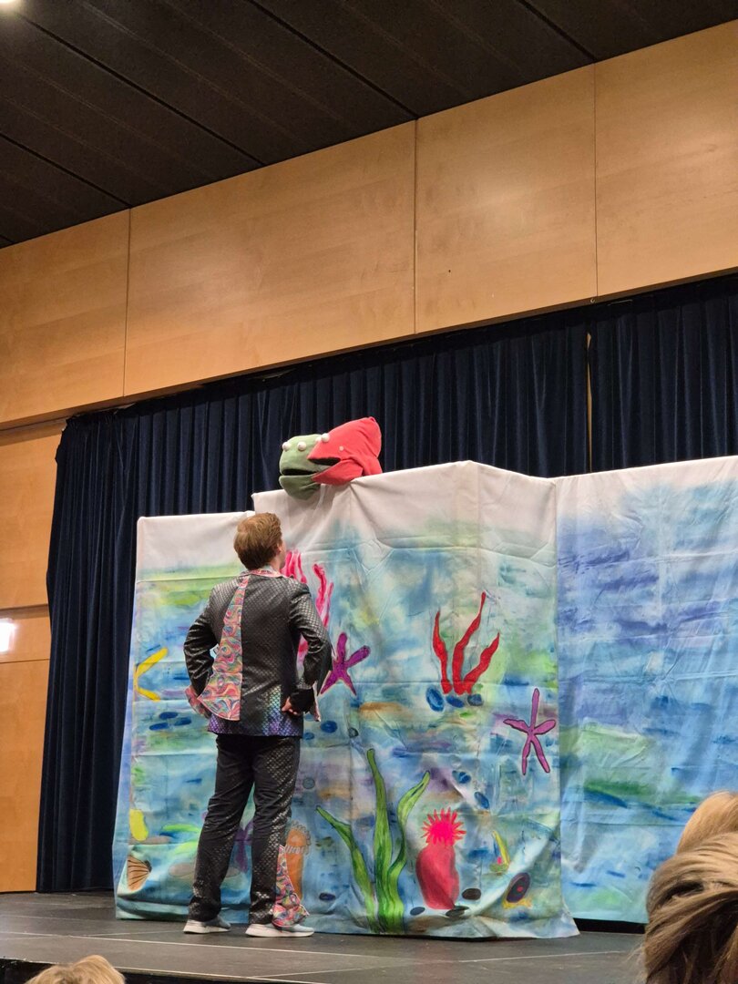 Am 19. März machten wir uns auf den Weg ins KUSS Wolfsberg. Dort spielte das Theater „Der Regenbogenfisch“. Gestärkt mit einer Jause und voller Vorfreude machten wir uns mit dem Bus auf den Weg. Schon die Busfahrt war ein Highlight. Dort angekommen, staunten unsere Kinder nicht schlecht. Die Bühne war mit einer schönen Kulisse vorbereitet und wir setzten uns auf unsere Plätze. Begrüßt wurden wir vom Hauptdarsteller, dem Regenbogenfisch.