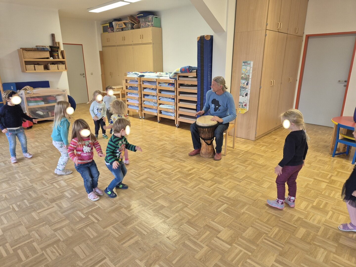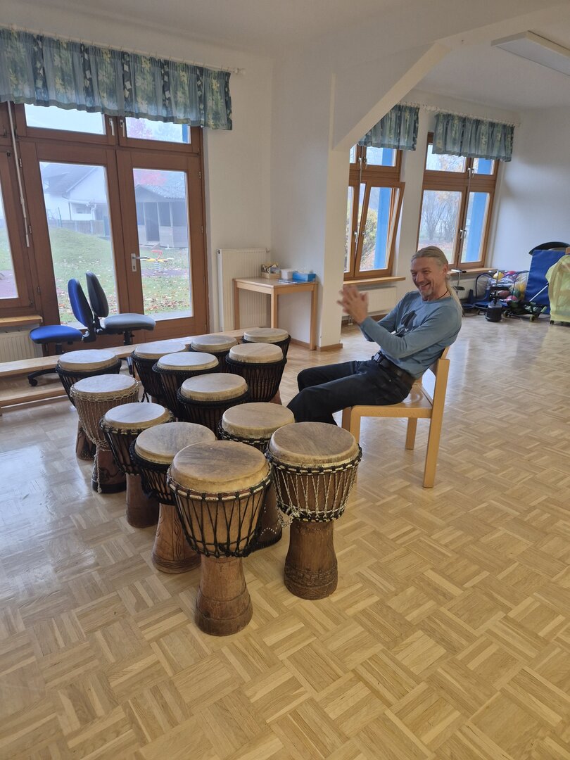 Er kam wieder mit seinen tollen Trommel und seinen spannenden Rhythmusinstrumenten zu uns ins Haus.