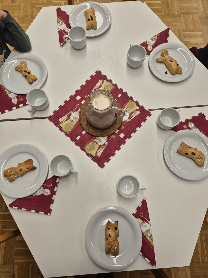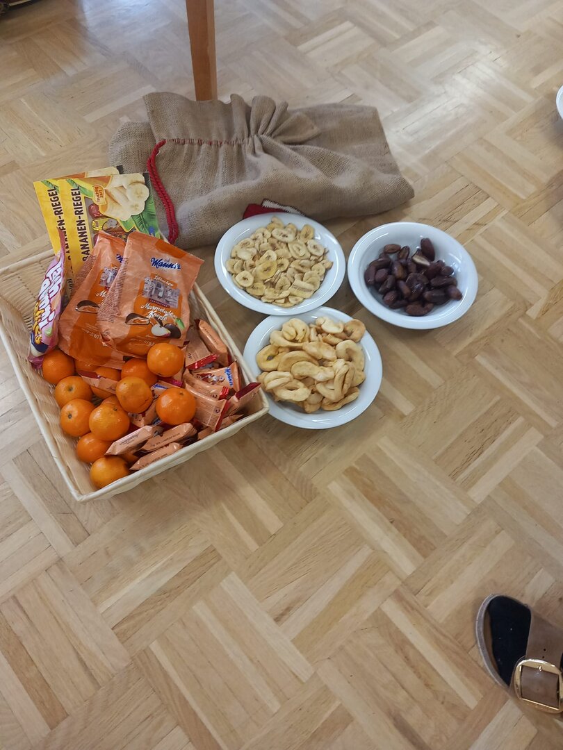 Wir trafen uns im Bewegungsraum und warteten gespannt, bis wir endlich Schritte hörten. Sankt Nikolaus ist hier!